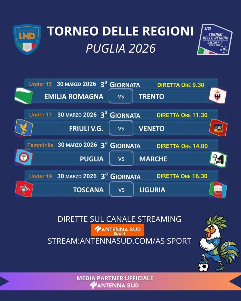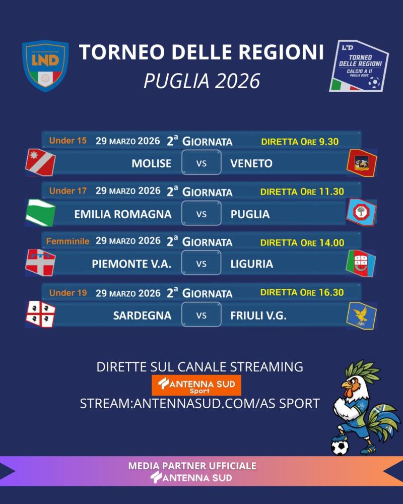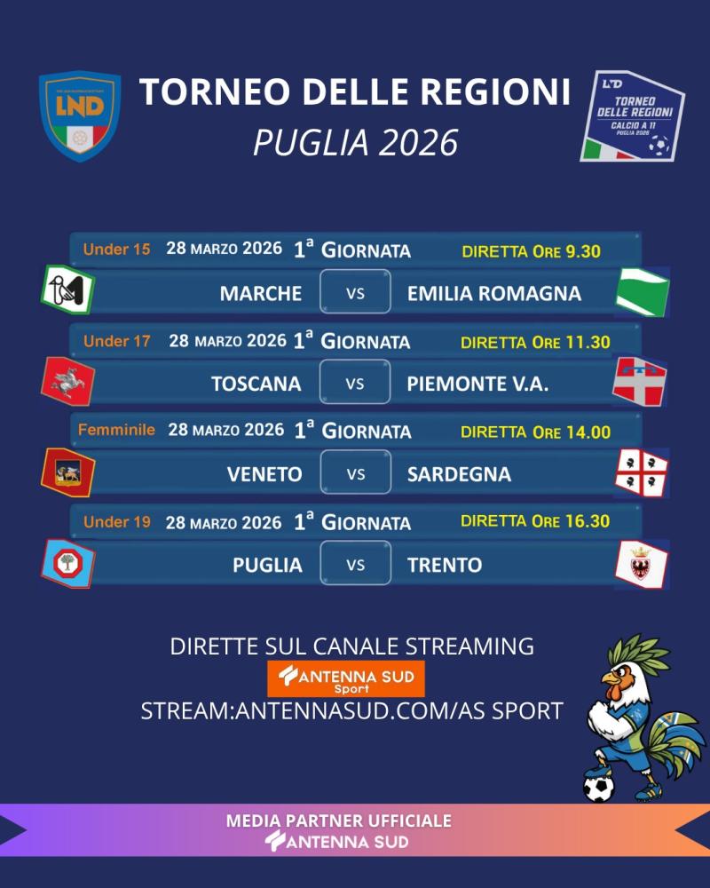 Sta per alzarsi il sipario sul Torneo delle Regioni 2026 e la Puglia sarà capitale del calcio dilettantistico giovanile dal 28 marzo al 3 aprile.