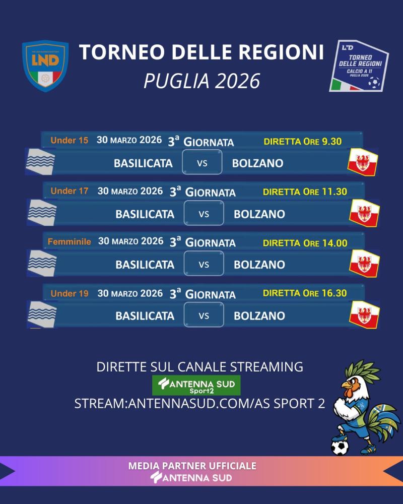 - 18:48 Calcio: il Torneo delle Regioni in diretta su Antenna Sud